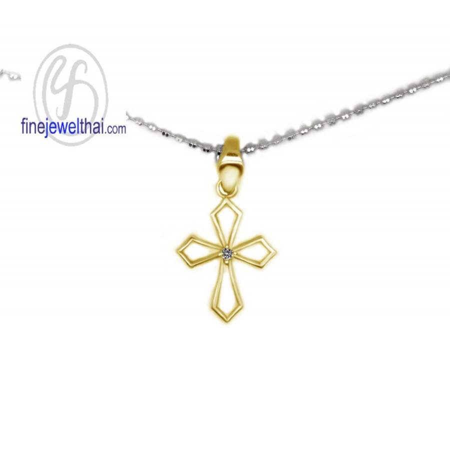 จี้ไม้กางเขน จี้เพชร จี้ทองคำ เพชรแท้ -P1120DG