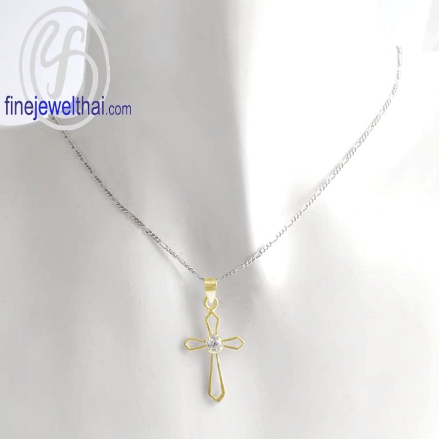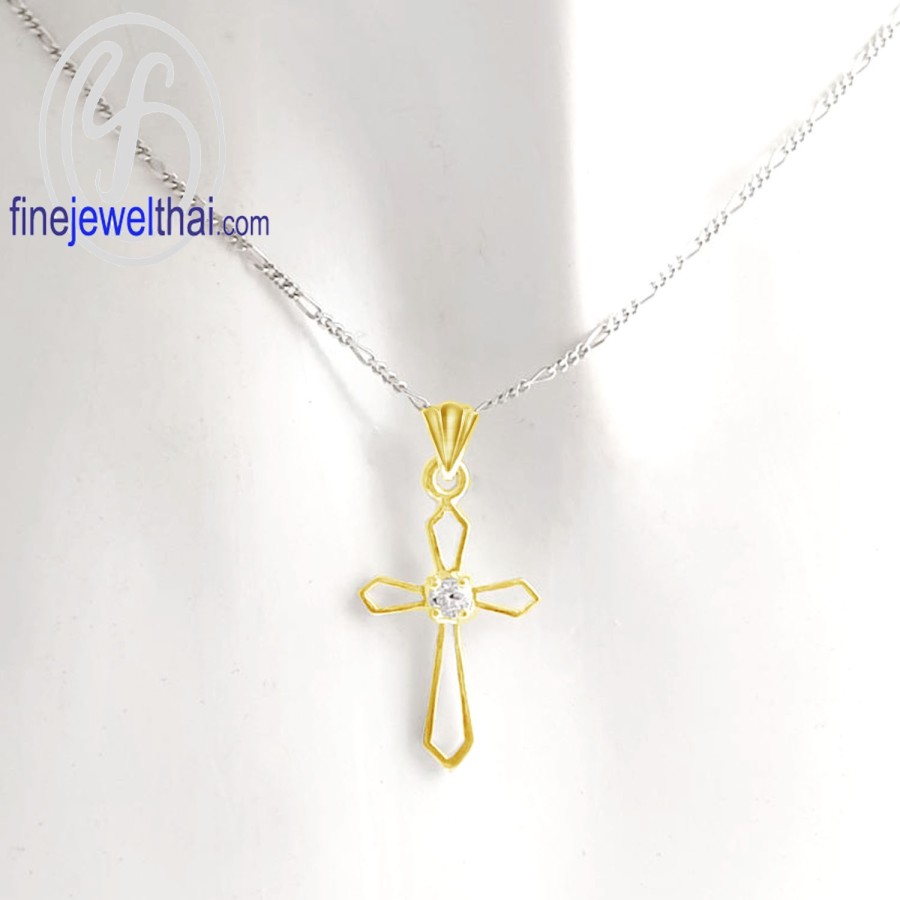 จี้ทองคำขาว จี้ไม้กางเขน - P1090WG ..
