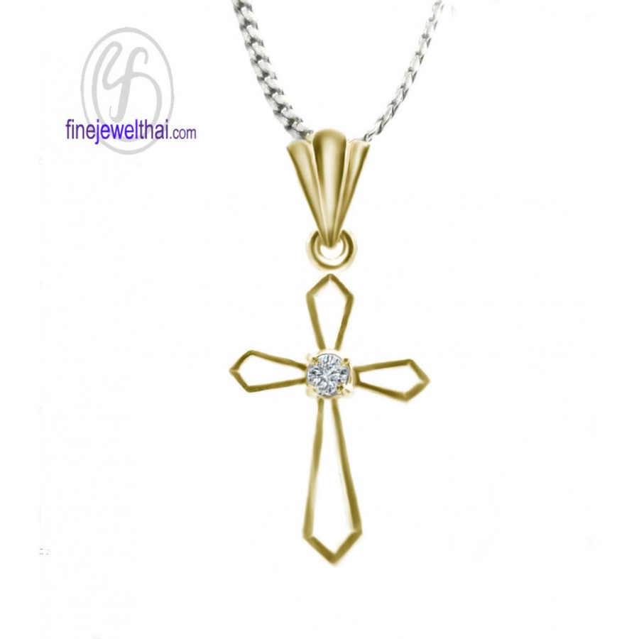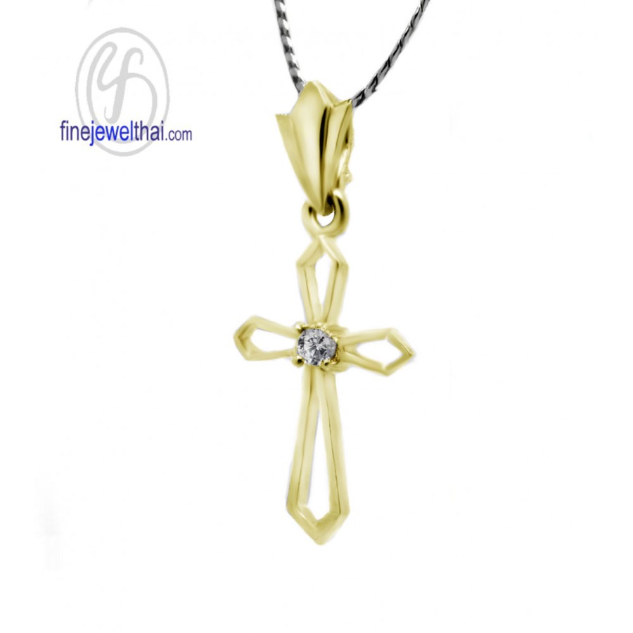 จี้ไม้กางเขน จี้เพชร จี้ทองคำ เพชรแท้ -P1021DG