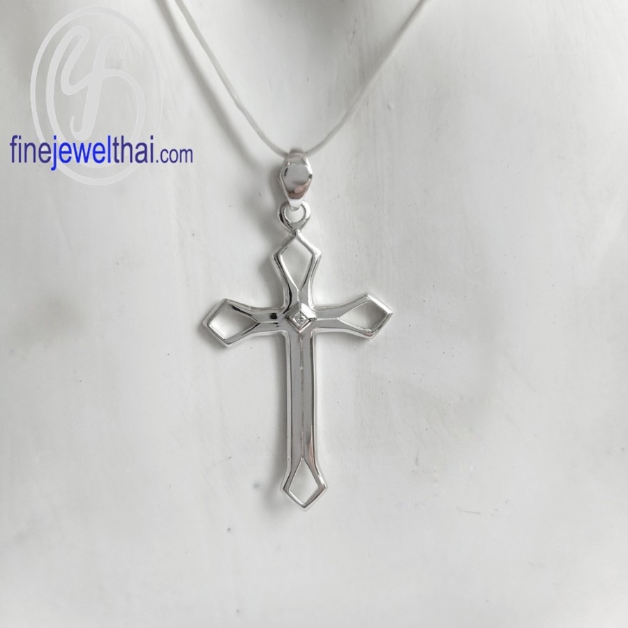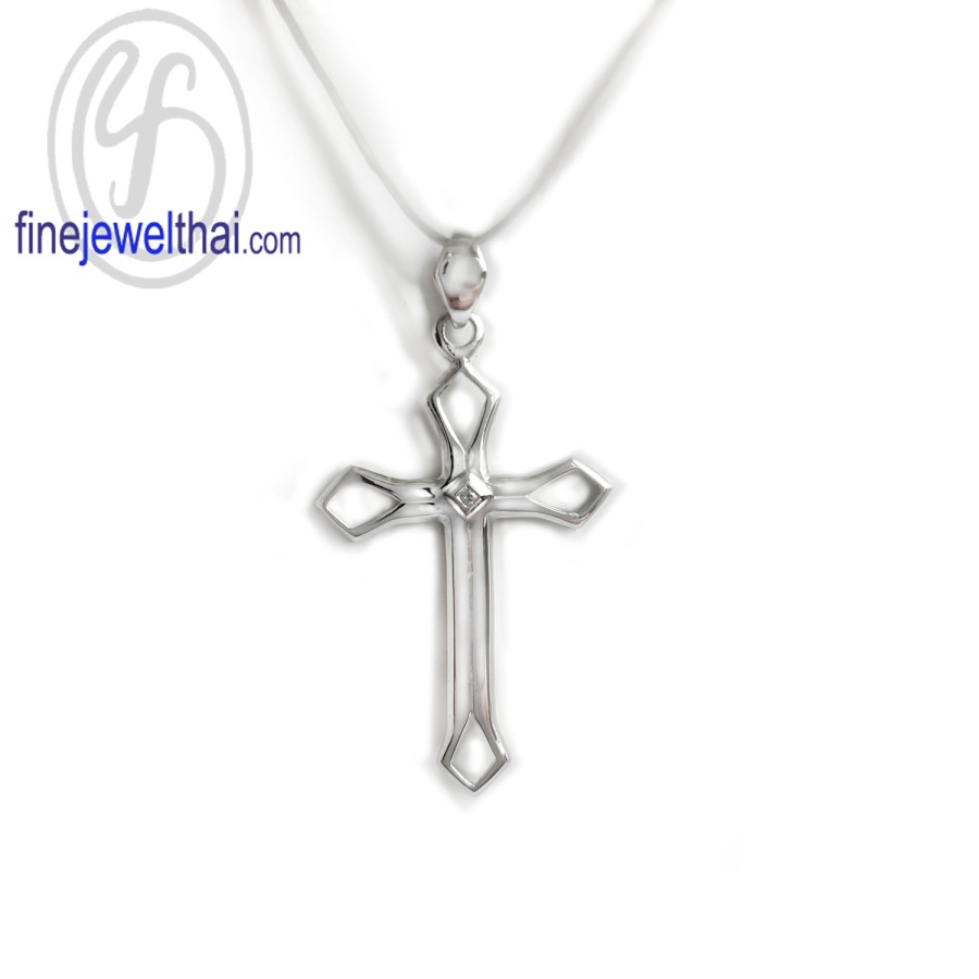 จี้เพชร จี้ทองคำขาว จี้ไม้กางเขน จี้เพชรแท้ - P1202DWG